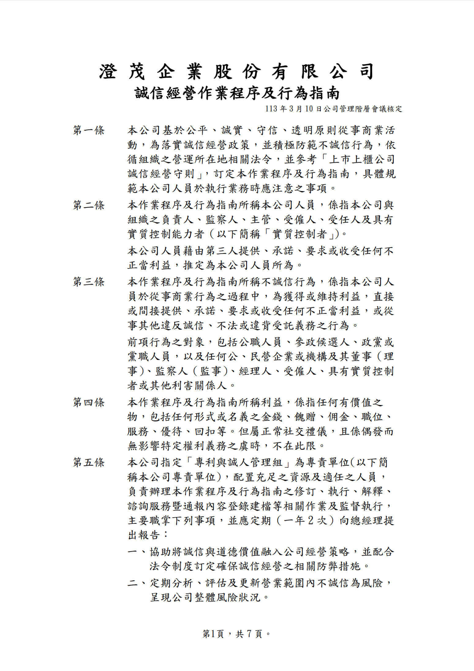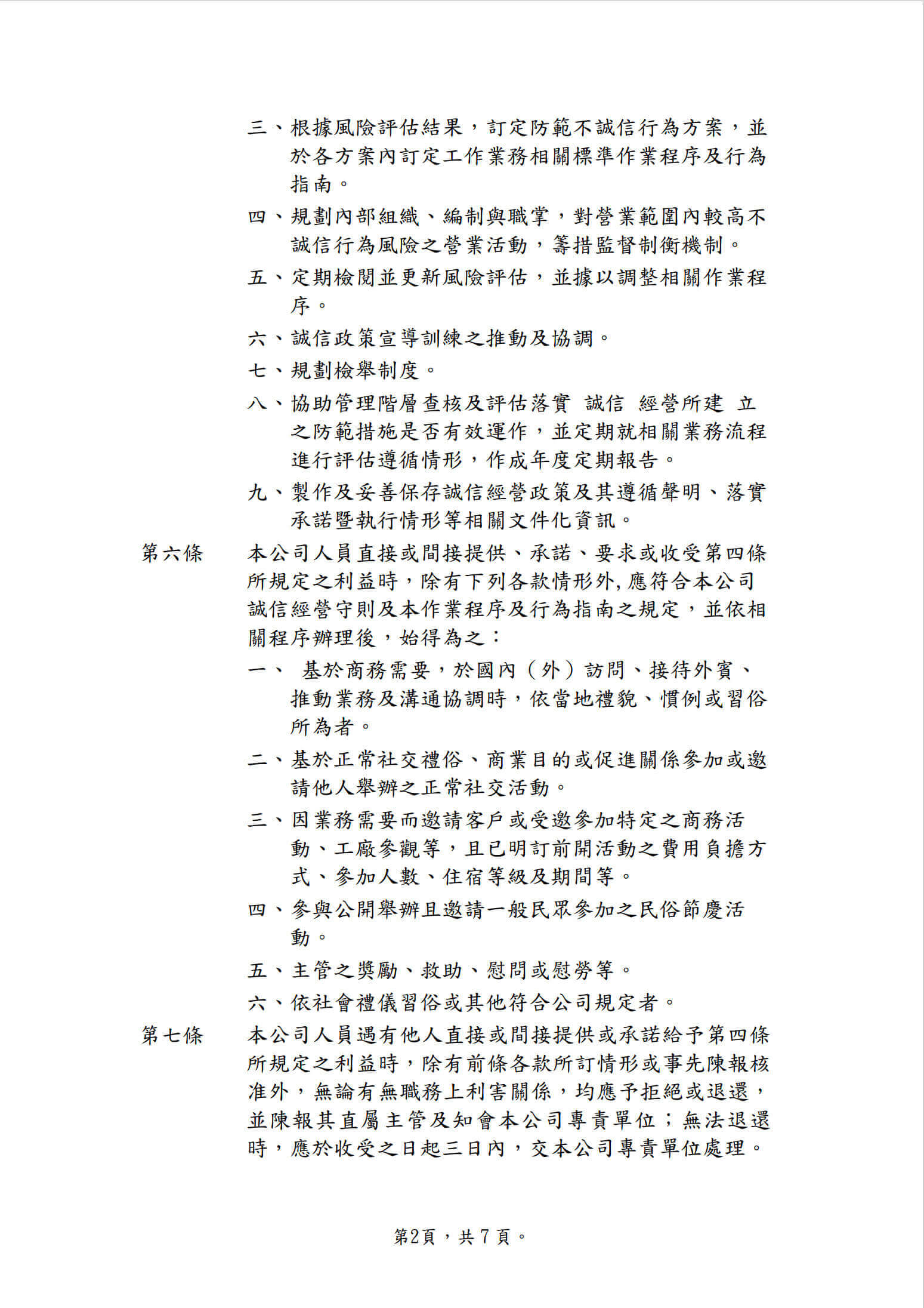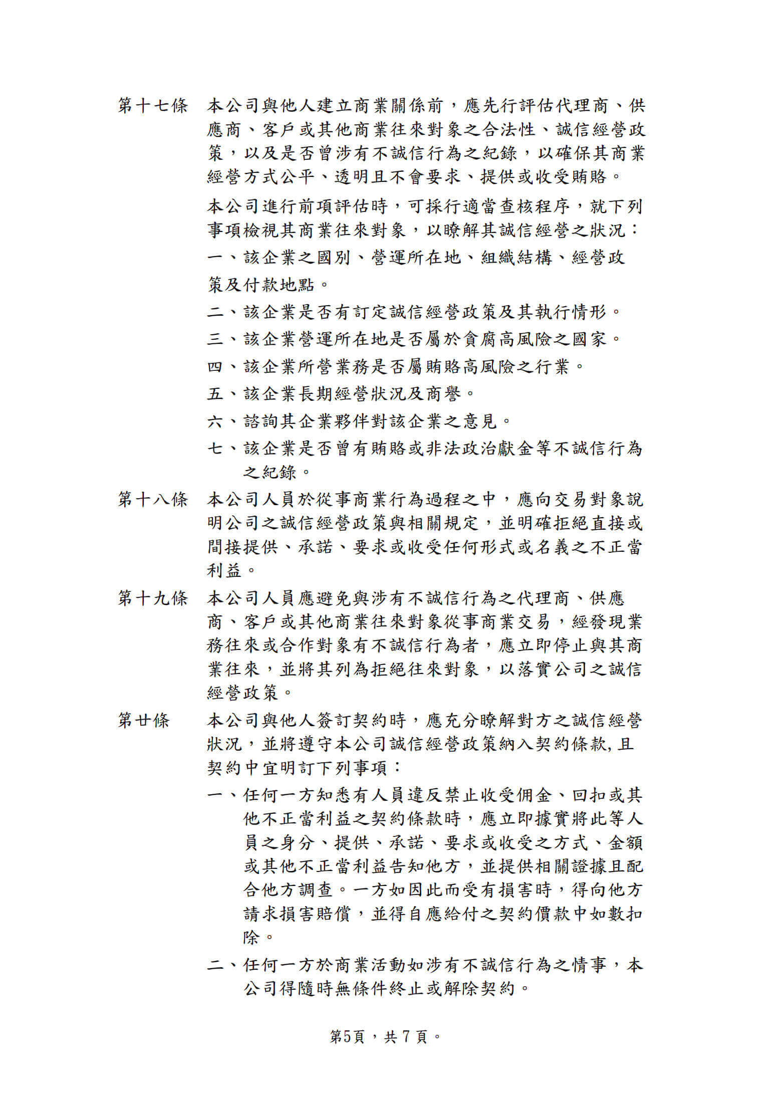 誠信經營作業程序及行為指南